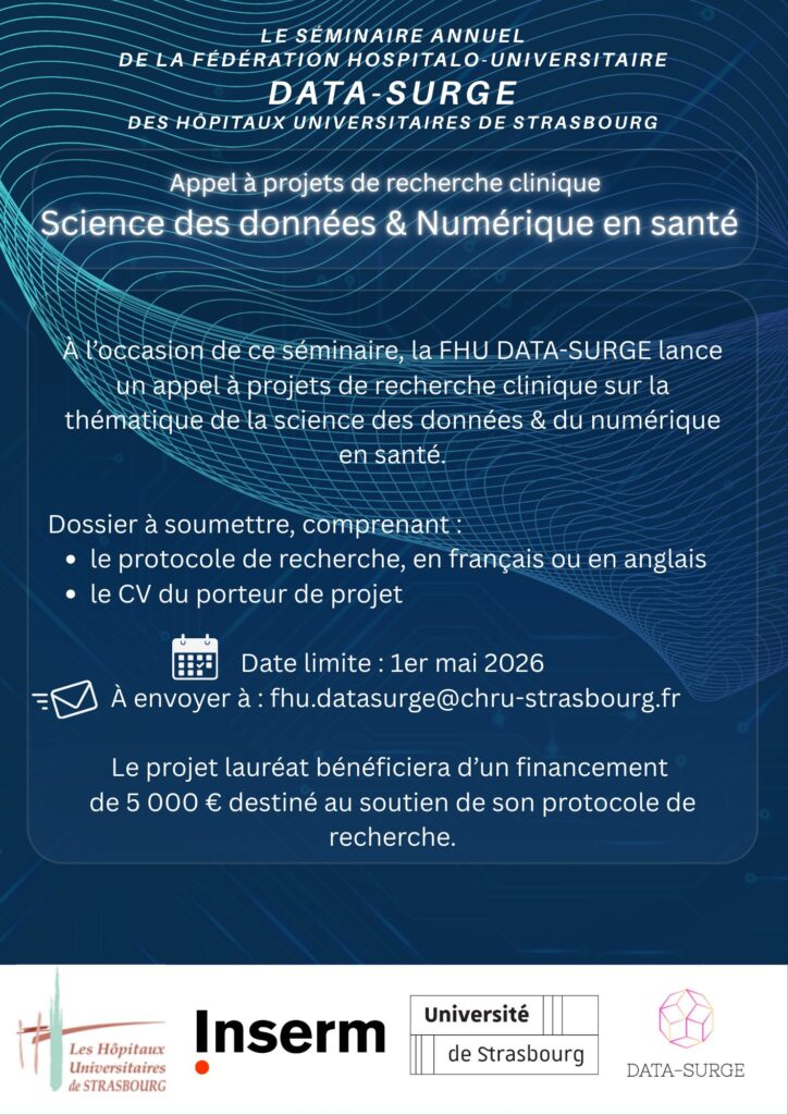 Les dossiers de candidature, en anglais ou français, comprenant protocole et CV du porteur sont à envoyer avant le 1 Mai 2026 à fhu.datasurge@chru-strasbourg.fr